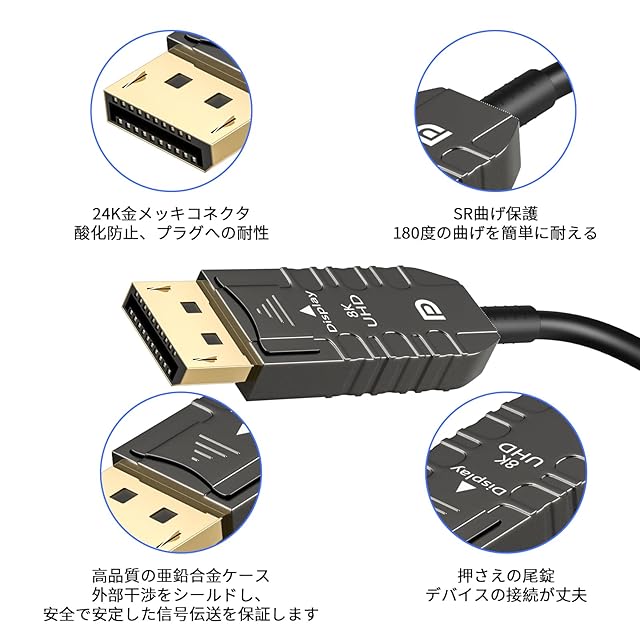 商品名:光ファイバー ディスプレイポートケーブル 20M 超高速ゲーミング 8K Displayportケーブル 32.4GBPS スリム DPコード 柔軟なAOC DP1.4ケーブル支持FreeSync G-Sync、8K@60HZ 4K@144HZ HDR3、VR、PC、HDCP2.2、HDTV、モニター対応