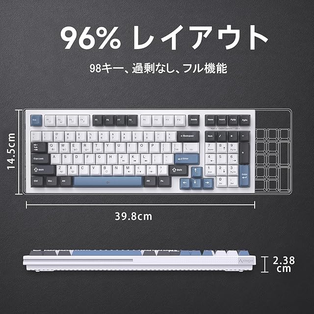 【96%コンパクトレイアウト】K98SEメカニカルキーボードは必要な文字&数字&ファンクションキーを残し、スペースを最大限に活用した98キーを採用しています。 これによりユーザーはさまざまなシーンで便利にタスクを実行できる。