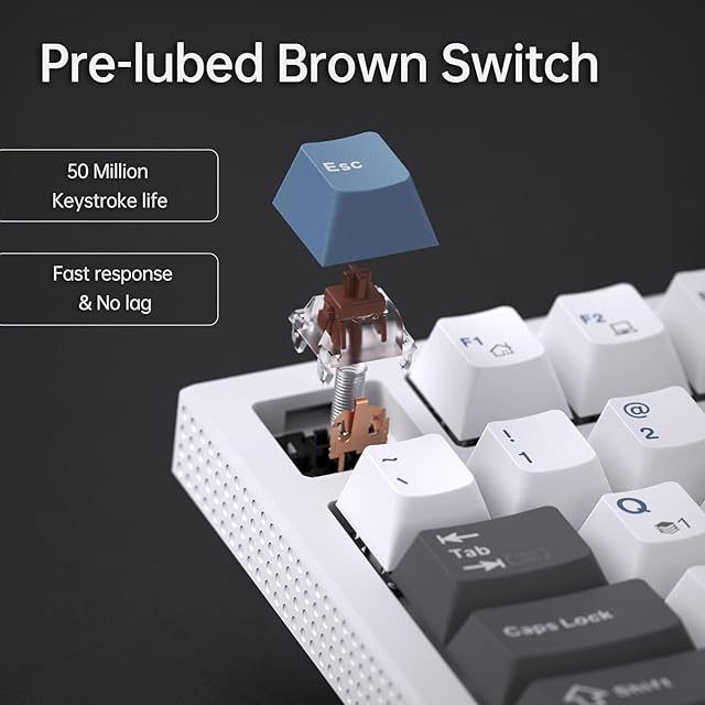【優れたメカニカル体験】 顕著な「クリック感」はなく触覚フィードバックはソフトです。 他の人の邪魔にならない程度のフィードバックが欲しいユーザーに最適です。 潤滑加工済みのスイッチとスタビライザーがキータッチと性能を向上します。