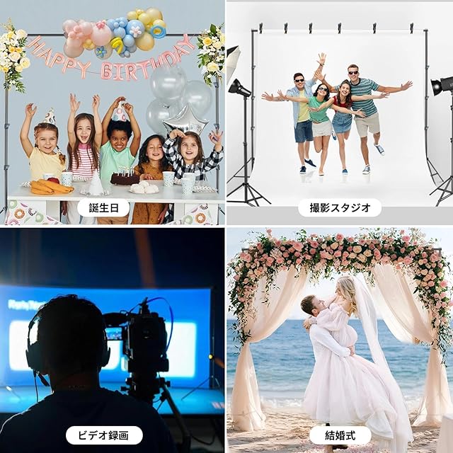 【プロで耐久性がある】スチール製の背景スタンドは、三脚設計により、良い安定性があり、頑丈で長く使用可能です。家族パーティー、結婚式、誕生日や写真スタジオ撮影などに適用します。