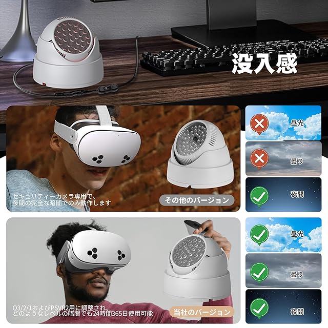 【没入感のある体験】暗闇で遊べます。このライトがあれば、暗闇でVRをしていても誰にも気づかれず、消灯時には家族の休息の邪魔にもなりません。真っ暗な環境でもVRゲームをプレイすることができ、鼻の部分の光が気にならなくなります。