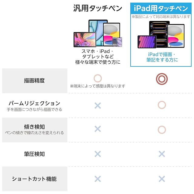 ペン先の接地点と実際に描画される位置とのズレを軽減しているので、狙ったところに書き込みやすいです。