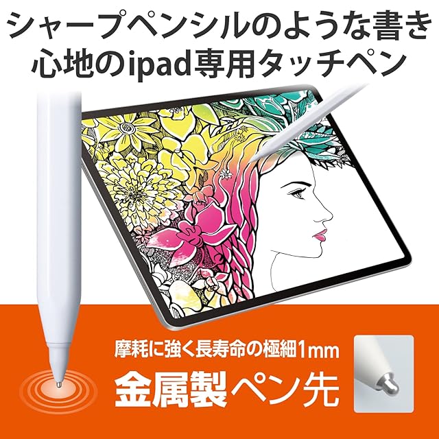 商品名:エレコム タッチペン 【 iPad専用 】 金属製ペン先 パームリジェクション対応 磁気吸着 傾き検知対応 USB-C充電 ペアリング不要 【Apple Pencil純正ペン先、エレコム製ペン先に交換可能】 ホワイト P-TPACSTAP04WH