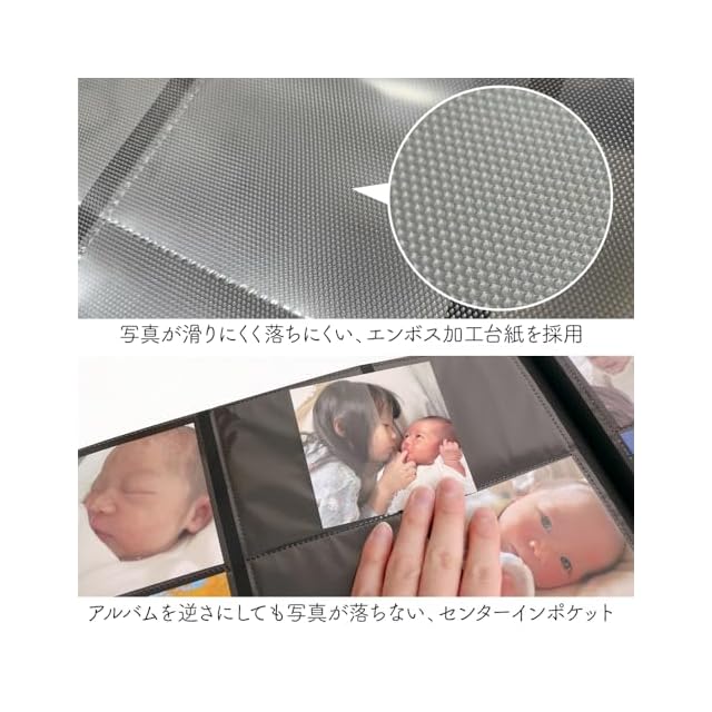 ポリプロピレン製スクエア判3段×3列ポケット3層黒エンボス台紙40枚(80ページ)/スクエア判720枚収納