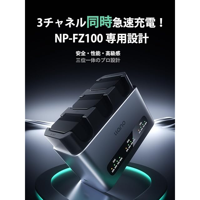商品名:llano NP-FZ100 カメラバッテリー 充電器 NP-FZ100 チャージャー (PD30W 急速充電/アルミ合金製/3個同時充電可能/USB-C対応) for Sony a9/A9R/9S/a6700/a6600/a7RV/a7IV/A7R3/a7III/a7cなど CM3シリーズ