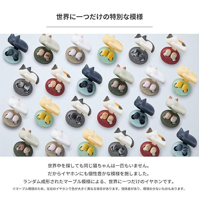 ※充電ケースの猫部分にはパーツの繋ぎ目がございますが、製品の成形上の仕様であり、不良品ではございません。丸くなって眠る猫のフォルムを成形するため、製造工程上どうしても必要な部分となりますので、何卒ご理解くださいますようお願い申し上げます。