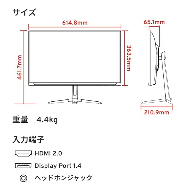 [端子] HDMI2.0 ×1 / DP1.4 ×1 / USB ×1 / ヘッドホンジャック