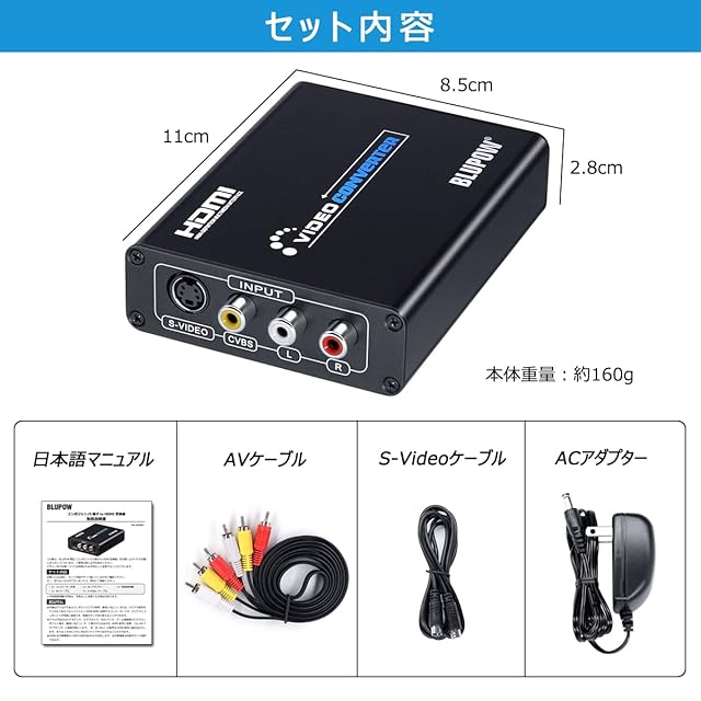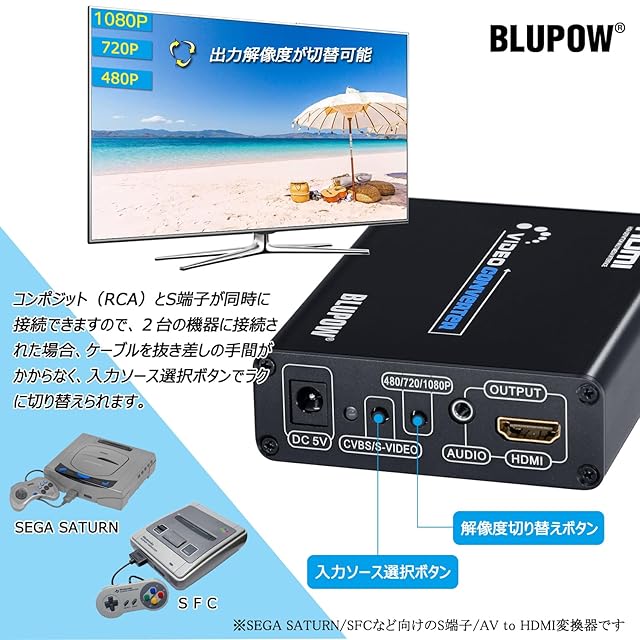 商品名:BLUPOW コンポジット/S端子 to HDMI 変換器 1080P対応 Composite 3RCA AV/S-Video to HDコンバーター Sビデオ/3色端子をhdmiに変換 アナログ デジタル 変換機 rca to hdmi レトロゲーム機(セガサターン/SFC/N64/PS2など)向けの変換器 日本語マニュアル付き VA504
