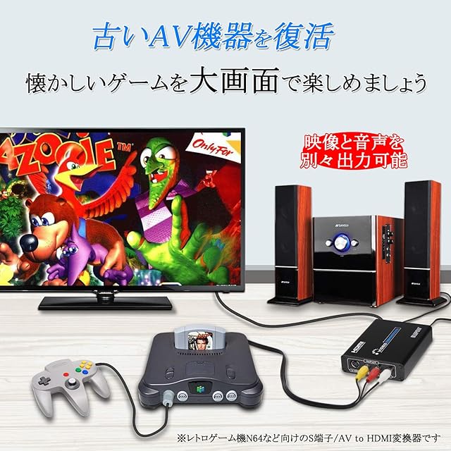 【昔のゲーム機などを復活】アナログ出力の古いビデオデッキ、ビデオカメラ、DVDデッキ、レトロゲーム機などのコンポジット端子や、S端子からの出力をHDMI信号に変換、大画面テレビやモニターで楽しめます。