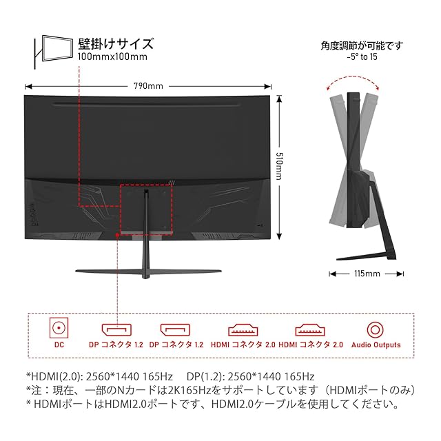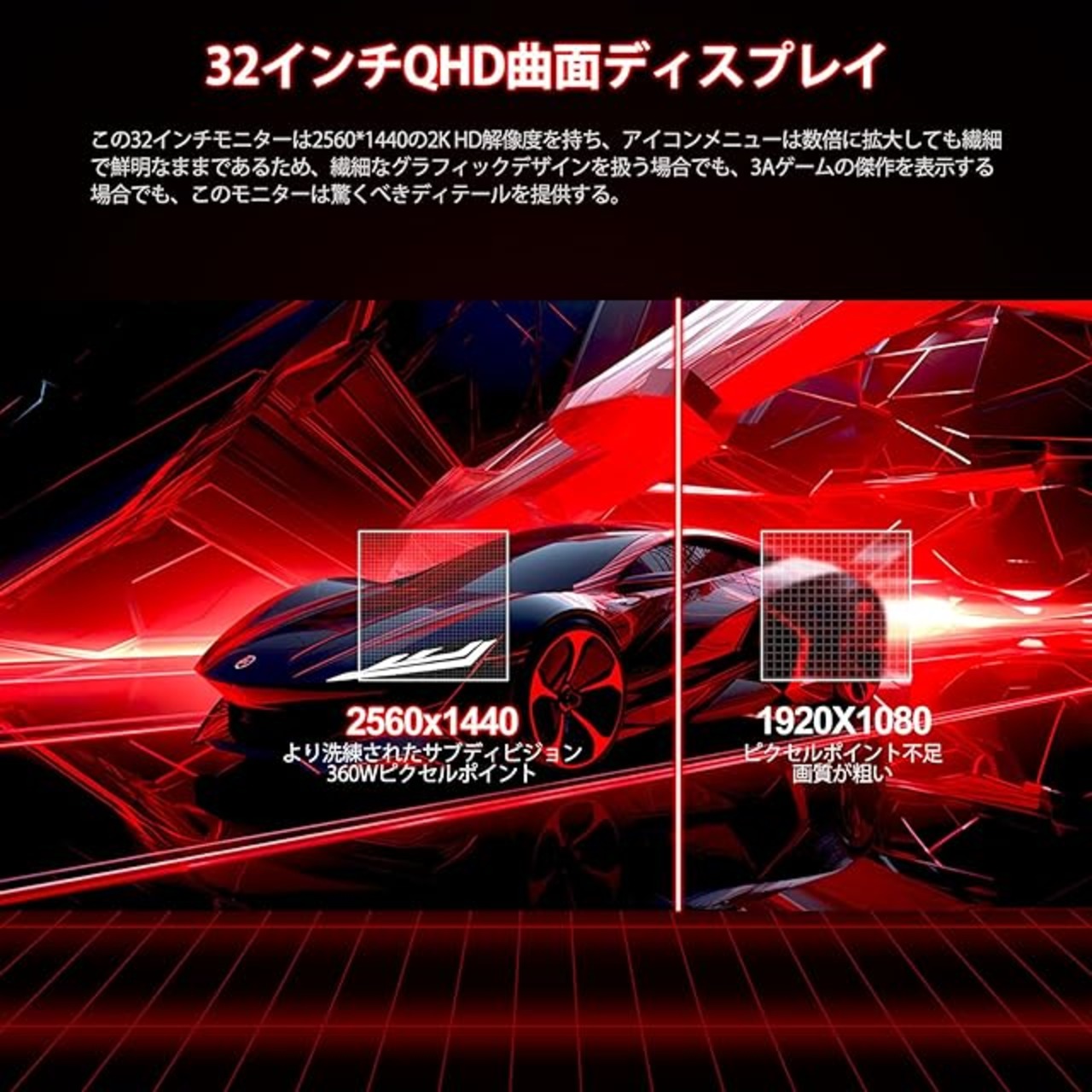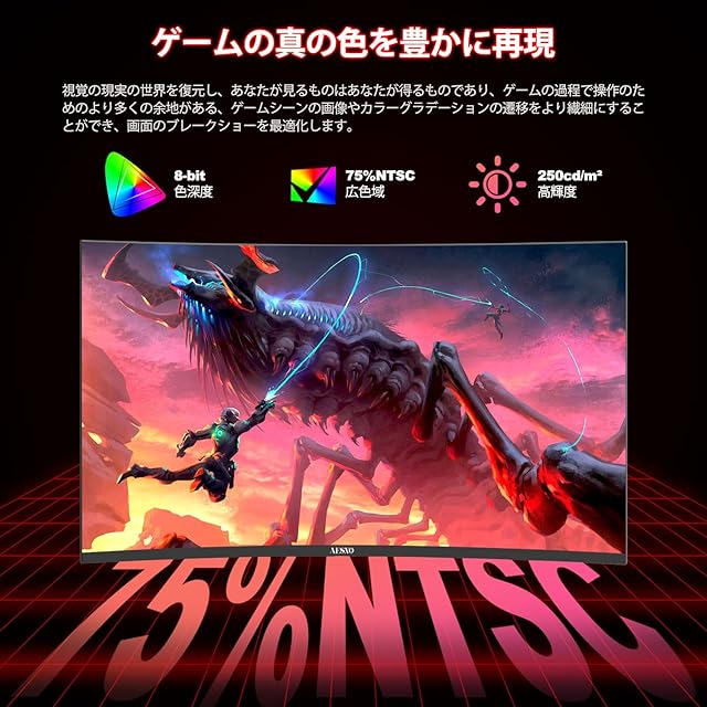 商品名:AESNO 32インチ ゲーミング モニター WQHD 2560x1440 165Hz 2K ディスプレイ 1440P 湾曲1800R VA 対応 Freesync 75% NTSC 1Ms(GtG) VESA 三年で安心