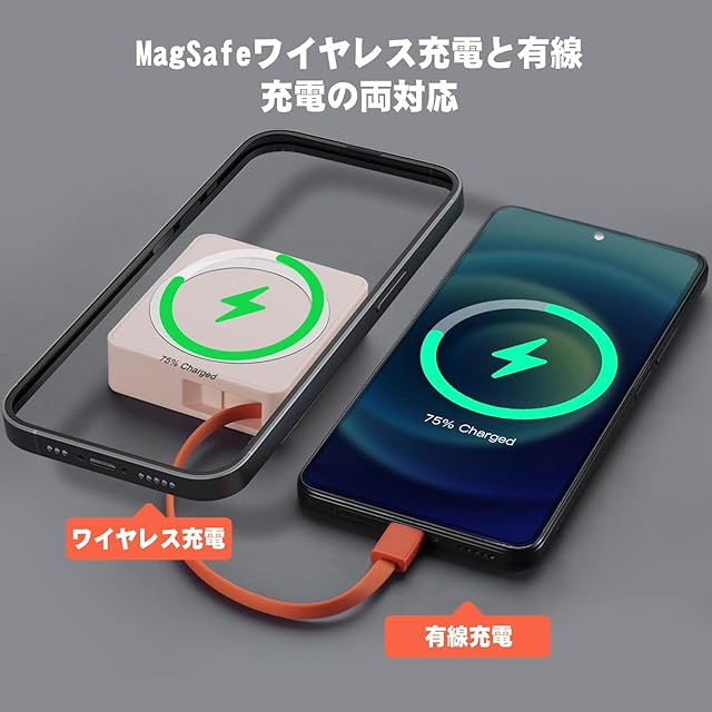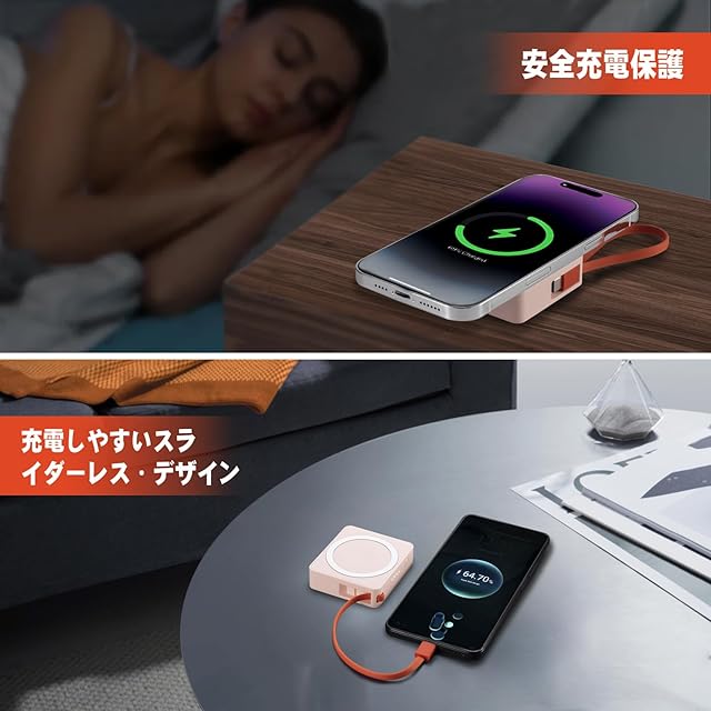 【全シリーズに対応機種】磁力で自動固定:マグセーフ技術に応用。 AFFLIC Mag Safe 対応iPhone 16/15/14/13/12全シリーズ。 対応Apple Watch10/9/8/7/6/5/4/SE/Ultra全シリーズ。 対応 AirPods/AirPods Proシリーズ。 自宅・旅行・出張先でお手軽に充電できます。 同時にiPhone/iWatch/AirPodsを使用する人には最適です! 何個の充電器を持たなくて、この一台モバイルバッテリーで済みます。 Type-Cケーブルポート対応約99%のIOS機器スマートフォンやタブレット、ほとんどのAndroid機器に対して急速充電することができます。 また、最大限3台同時充電できるのことで、友達や、家族へシェアができてとても便利です。 ご注意:同時充電する際にはデバイスに熱くなる可能性が高いので、予めご了承ください。
