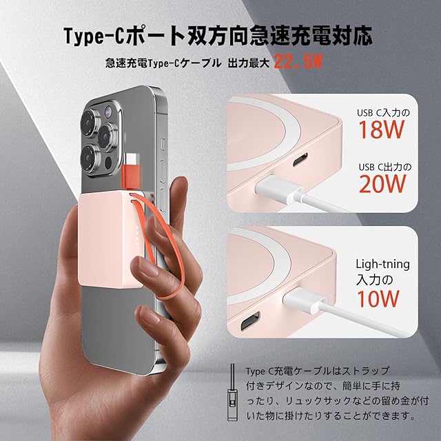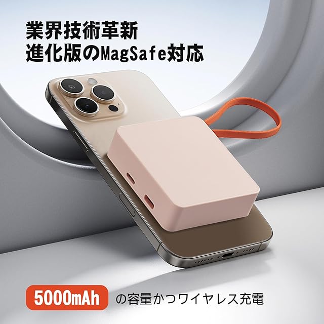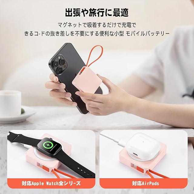 商品名:AFFLIC モバイルバッテリー 小型 5000mAh Magsafe対応iPhone16/15/14/13/12シリーズ マグネット式 3in1ワイヤレス充電 強力な吸着力 最大22.5W急速充電 Type-Cケーブル出力 3台同時充電可能 LED残量表示 Lig-htning入力&USB C入力/出力 対応Apple Watch/AirPods/アップルウォッチ全シリーズ 超軽量 (ピンク)
