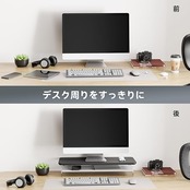 【収納プラス・卓上をすっきり】モニター台2段式で上段はスマホやタブレットやノートなどをすっきりに収納できます。 下段の空間を活用して、キーボード、マウスなどの周辺機器を整理し、デスクを広くご利用いただけます。