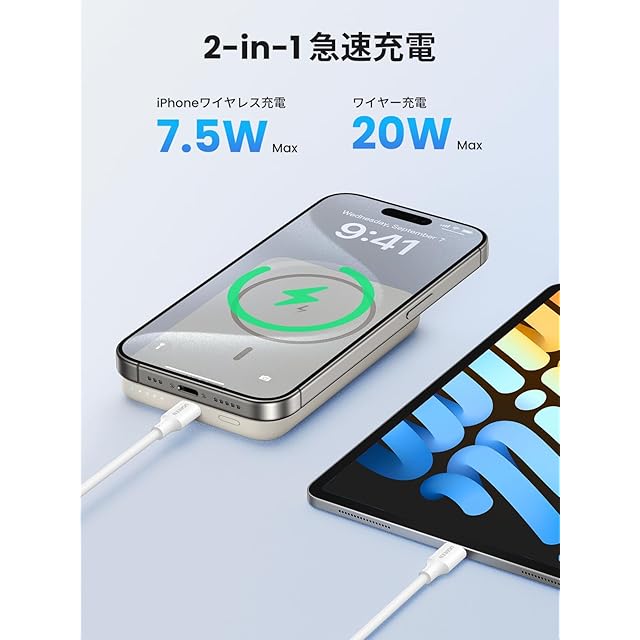 【★ USB-Cポート・入出力20W急速充電対応 ★】USB-Cポート1基搭載されており、充電ケーブル経由でワイヤー充電もできます。入出力20W仕様で、本体への急速充電やiPhone機種などの急速充電ができます。ワイヤレス充電とワイヤー充電という2種類の充電方法に対応し、お好きな充電方式を自由に選べます。