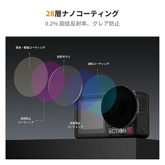 【28層ナノコーティング】 28層ナノコーティング: 撥水・防汚効果があり、雨やホコリからフィルターを保護。常にクリアな映像を維持します。