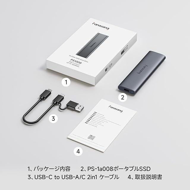 商品名:【超軽量高速SSD】Fanxiang ポータブル外付けSSD 最大1050MB/s 【PS4/PS5対応】USB 3.2 Gen2 携帯便利 データ暗号化 ハードディスク 軽量 小型 静音 ノートPC/タブレッ/iPhone対応 高速ポータブル ゲーミングpc ストレージ portable ssd 500GB/1TB/2TB (2, TB)