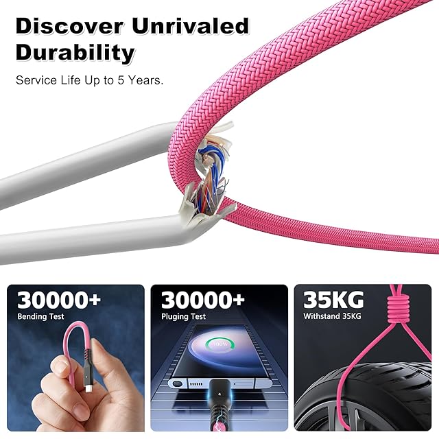 【耐久&安全設計】2年付属:電子タグチップ内蔵で過充電防止/ショート保護を実装。1万回屈曲テスト通過済ケーブル本体+接続部アルミ補強