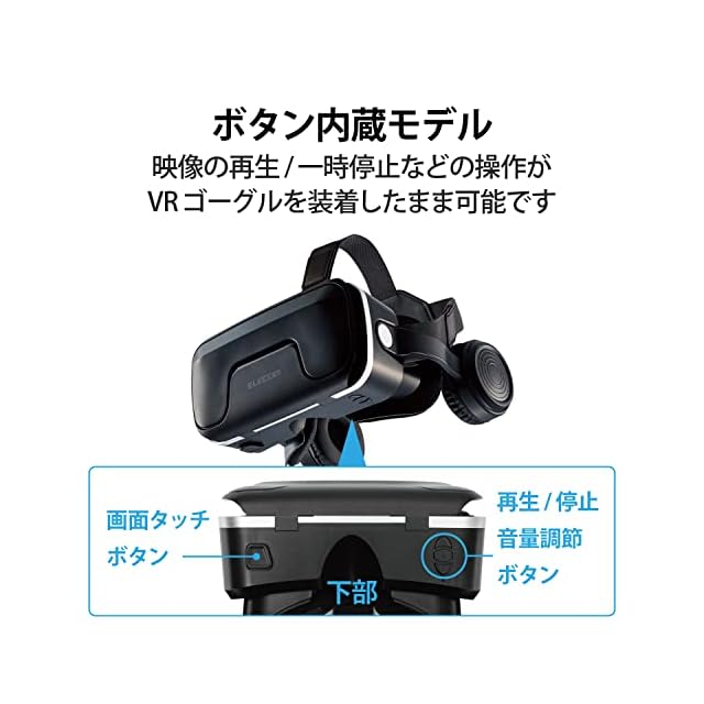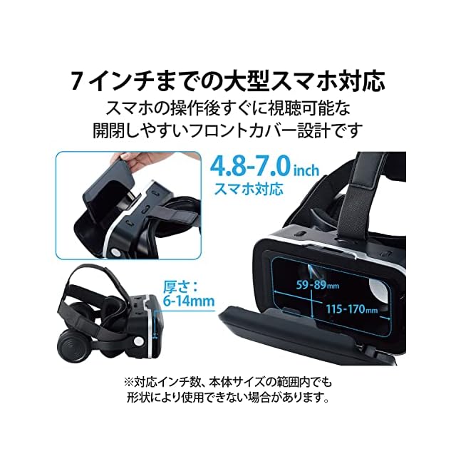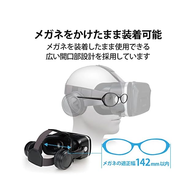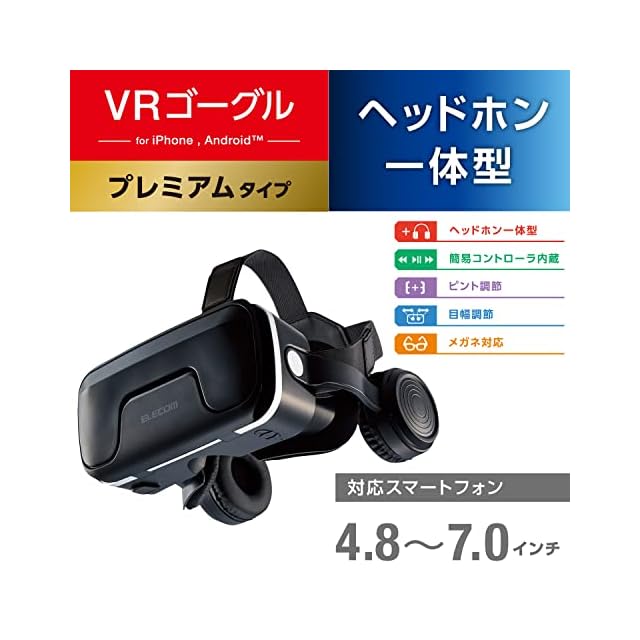 商品名:エレコム VRゴーグル VRヘッドセット ヘッドホン一体型 スマホ用 メガネ対応 目幅調節可 ピント調節可 4.8~7インチ iPhone Android対応 3D 非球面光学レンズ Youtube動画など ブラック VRG-EH03BK