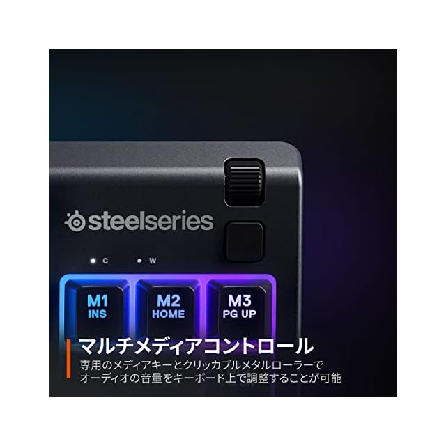 【マルチメディアコントロール付き】専用のメディアキーとクリッカブルメタルローラーで、オーディオの音量をキーボード上で調整することが可能です。