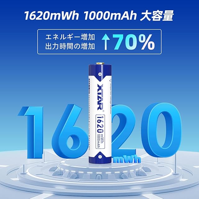 XTAR 1.5V 単4リチウム電池 1620mWh 高容量AAA充電池