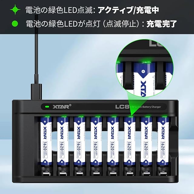 商品名:XTAR 1.5V 単4リチウム電池 1620mWh 高容量AAA充電池 (単四電池8本+LC8充電器)