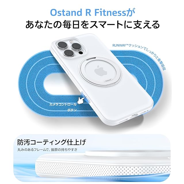 TORRAS iPhone 16 Pro 用 ケース【カチカチ・多機能360度回転スタンド】カメラコントロールボタン付き 縦横両対応 マグネット搭載 MagSafe対応 米軍MIL規格耐衝撃 リング 指紋防止 黄変防止 マグセーフ対応 レンズ保護 滑り止めドット模様 手持ち撮影 安定性 三眼 いphone 16 pro 用 ケース 6.3インチ「Ostand R Fitness」(純白) | TREND DESIGN 家電専門店