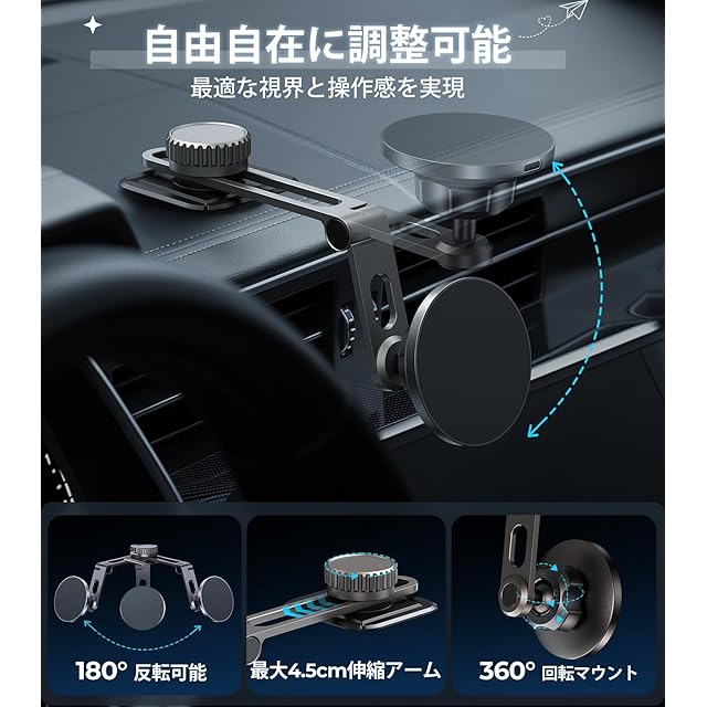 MINISO スマホホルダー 車 MagSafe 車載ホルダー ワイヤレス充電器 【N52強力磁石吸着】 iPhone 16対応 マグセーフ 車 スマホスタンド 360度回転 折りたたみ式 車載スマホホルダー スマート設計 高耐熱 取り外し簡単 スマホスタンド 車 マグセーフ対応 | TREND DESIGN 家電専門店