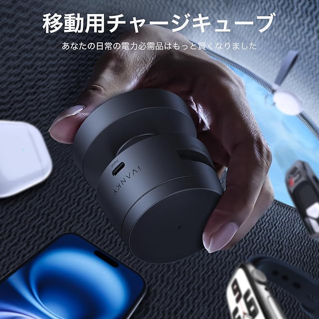 商品名:iVANKY 4in1 充電器 Cube ワイヤレスステーション MagSafe 用マグネット Wireless Charging Station ナイトランプ付き ポータブル トラベルスタンド 22.5 W マグセーフ 3in1 急速充電iPhone 16/15/14/13/12/11 Pro Max 用 (ミッドナイトブルー, 33 W PDアダプタ付き)