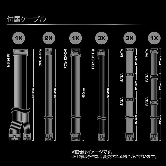 12VHPWRと互換性のある新規格12V-2x6の105℃耐熱ケーブルを搭載。デュアルカラーデザインで接続不足を解消