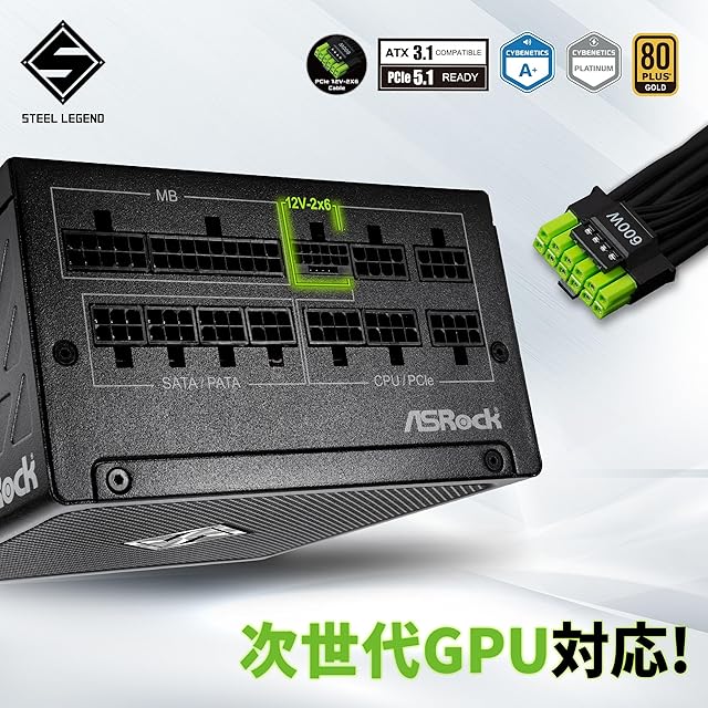 ASRockSteel Legend 次世代GPU対応PC電源ユニット850WPCIe5.1対応80PLUS GOLDATX 3.1フルモジュラー 12V-2x6 ケーブル付属SL-850G | TREND DESIGN 家電専門店