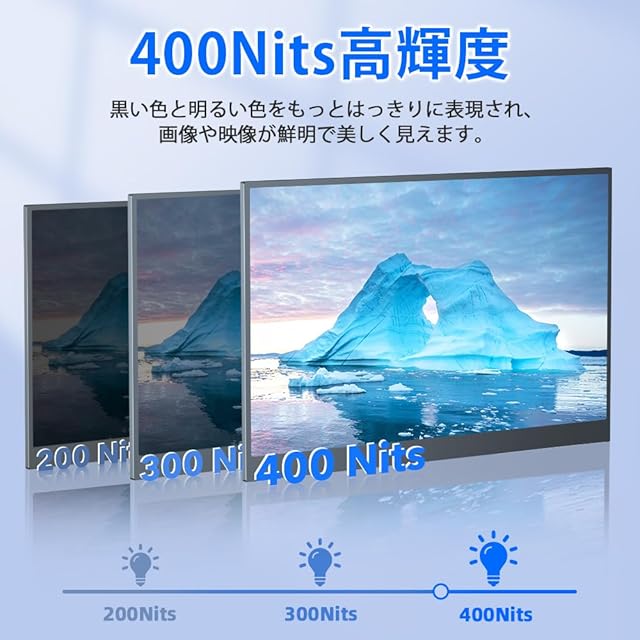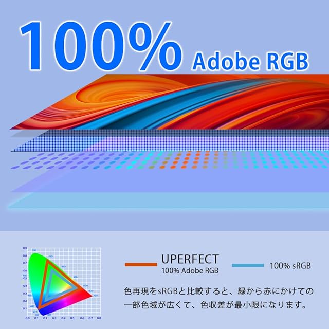 【4K高解像度・100% Adobe RGB】美しい映像が楽しめる4K解像度のモバイルモニターです。4K UHD(3840×2160ピクセル)で、フルHDの4倍の画素数で鮮やかな表現力を実現し、ゲームや映画を楽しむ時にリアリズムを体験できます。Adobe RGBカバー率100%を達成した広色域、正確な色を美しく再現します。可視性に優れた非光沢(ノングレア)IPS液晶パネルを採用されるため、視野角による輝度変化が少なく、最大178°までどこから見ても鮮明な美しい画像や映像が表示できます。