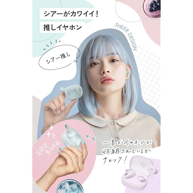 ✅透け感のあるシアーなデザイン___コンパクトで丸みのあるフォルムの充電ケースはストラップ付き。透け感のあるシアーなデザインは、ケースを開けなくても中身が見えて便利。カラーはモカ、アイスブルー、パープル、ホワイト、ブラックの5色。