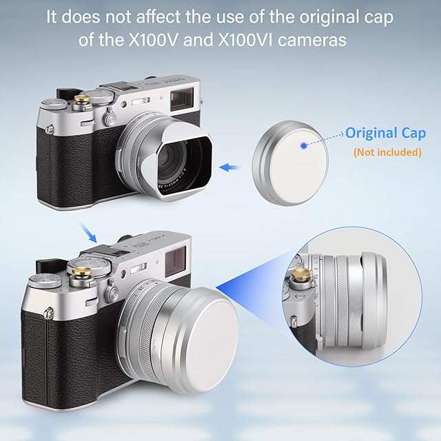 オリジナルのFujifilm x100v x100viレンズキャップをレンズフードに取り付けることができます。