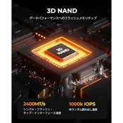 高速転送 - シーケンシャルリード性能7000MB/秒、シーケンシャルライト性能6500MB/秒、4Kランダムリード速度最大1000k IOPS、4Kランダムライト速度最大800k IOPS。