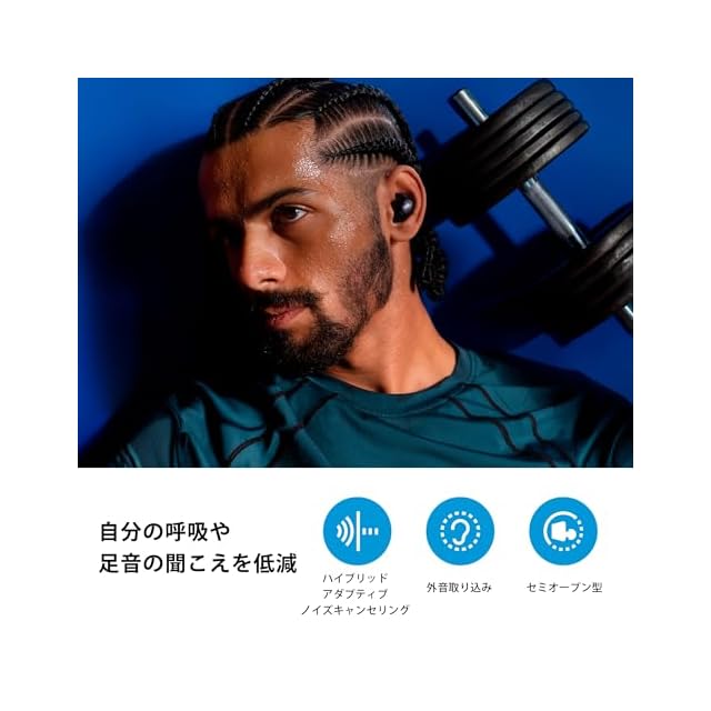 自分の呼吸や足音の聞こえを低減するセミオープン型ワイヤレスイヤホン