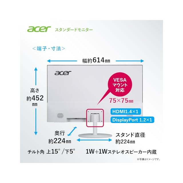 商品名:Acer モニター SA272UEwmiipx 27インチ IPS 非光沢 WQHD 2560×1440 100Hz 1ms(VRB) HDMI2.0 HDR10 スピーカー内蔵 ヘッドホン端子 AMD FreeSync ホワイト