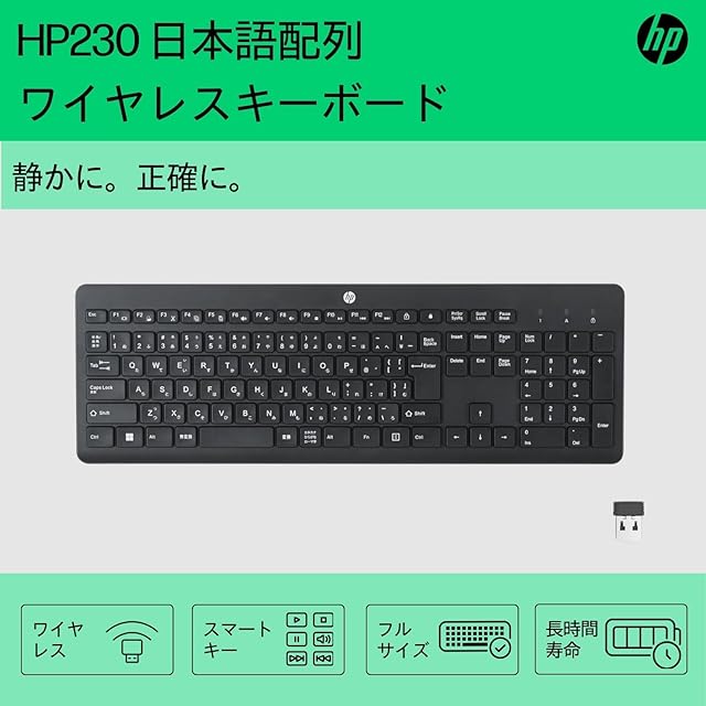 商品名:HP キーボード ワイヤレス 無線 日本語配列 JP配列 HP 230 ワイヤレスキーボード(型番:3L1E7AA#ABJ) Mac Windows PC MacBook対応【国内正規品】
