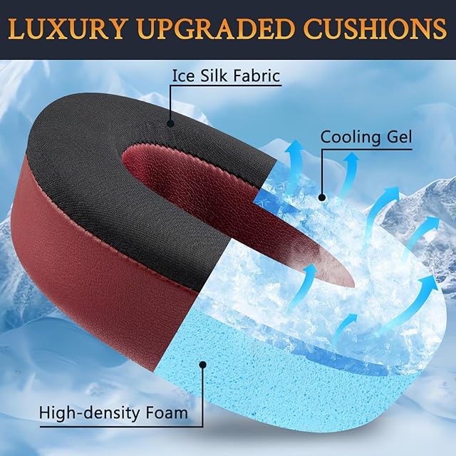 【冷却ジェル】ヘッドパッドの表面は通気性良いのアイスシルク生地を採用されて、その下の層に冷却ジェルが入ります。汗を吸収する素材なので、長時間の間に使用しても蒸れにくいです。ヘッドセットと 超ぴったりです。