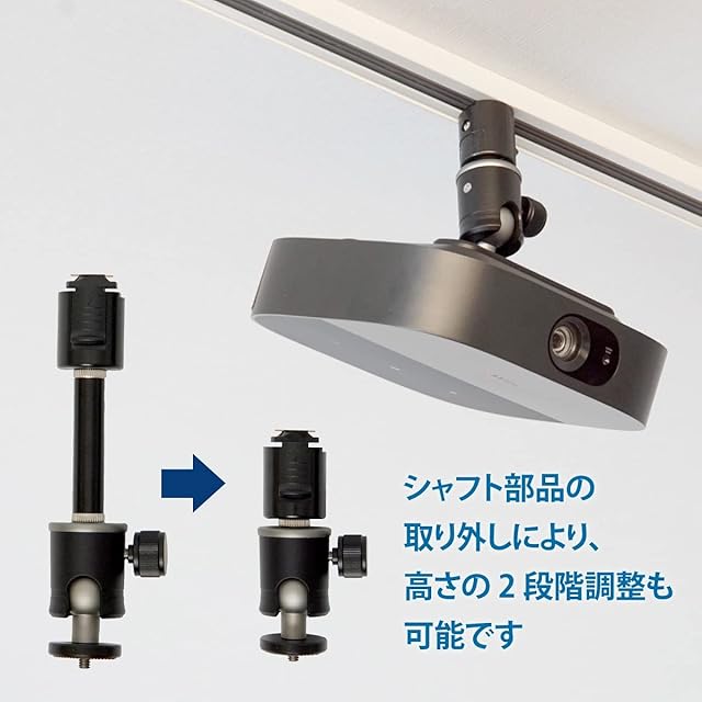 【特徴】ダクトレールに小型プロジェクターを簡単に天吊り設置できます。三脚用ネジ穴に本製品を取り付ければ、工具も使わずワンタッチ装着。