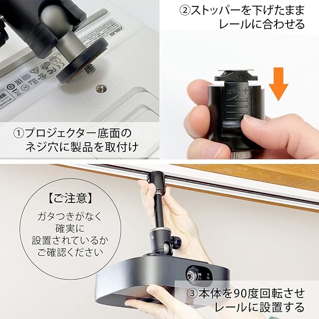 【注意】 ※本製品にはプロジェクターは含まれておりません。 ※本製品はライティングレール専用となっております。それ以外の場所には設置しないで下さい。 ※本製品は輸送時の接触により、部品に多少の傷やへこみが付く場合があります。製品には全く問題ありませんので、予めご了承下さい。