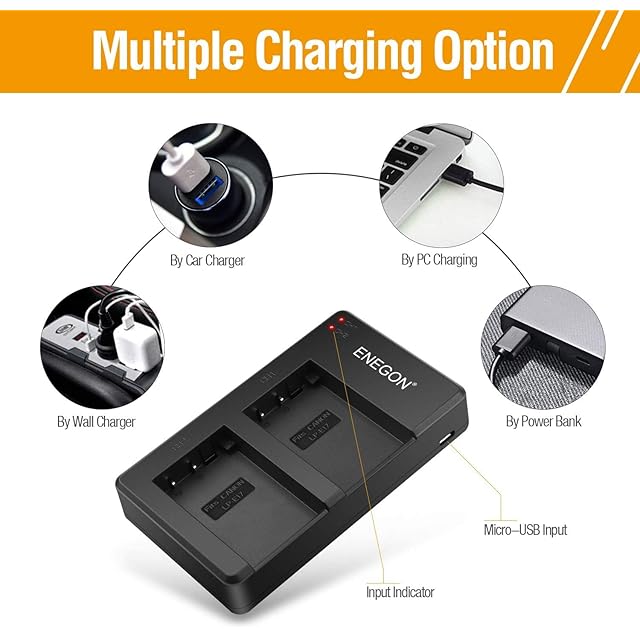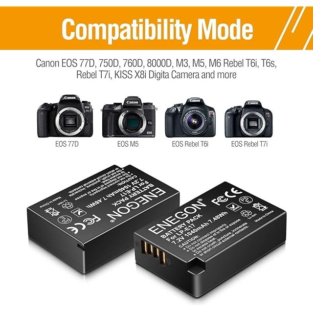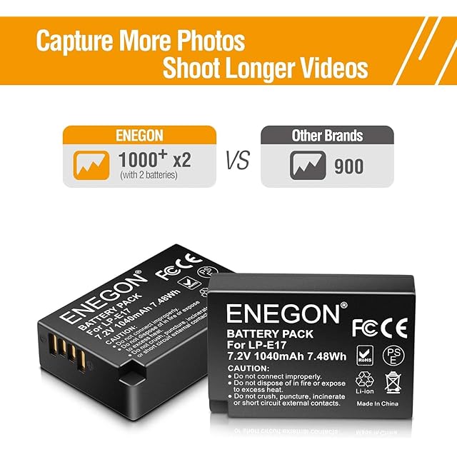 商品名:ENEGON LP-E17 互換 バッテリー2個 マイクロUSBデュアルチャージャー付き Canon EOS R100 R50 RP R10 R8、Rebel T8i、T7i、T6i、T6s、SL2、SL3、EOS M3、M5、M6、EOS 200D、77D、750D、760D、800D、8000D 9000Dデジタル一眼レフカメラ用