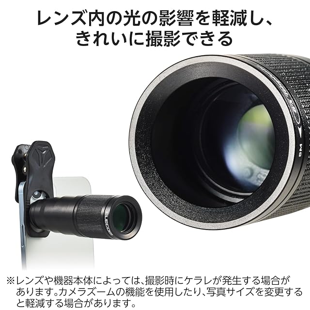商品名:エレコム スマホ 望遠レンズ 8倍 8× 外付け 挟むだけ FMC加工 ケラレ現象軽減 レンズキャップ付き 収納ポーチ付属 iphone P-SLZ8XBK