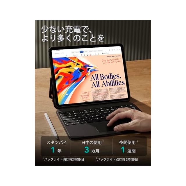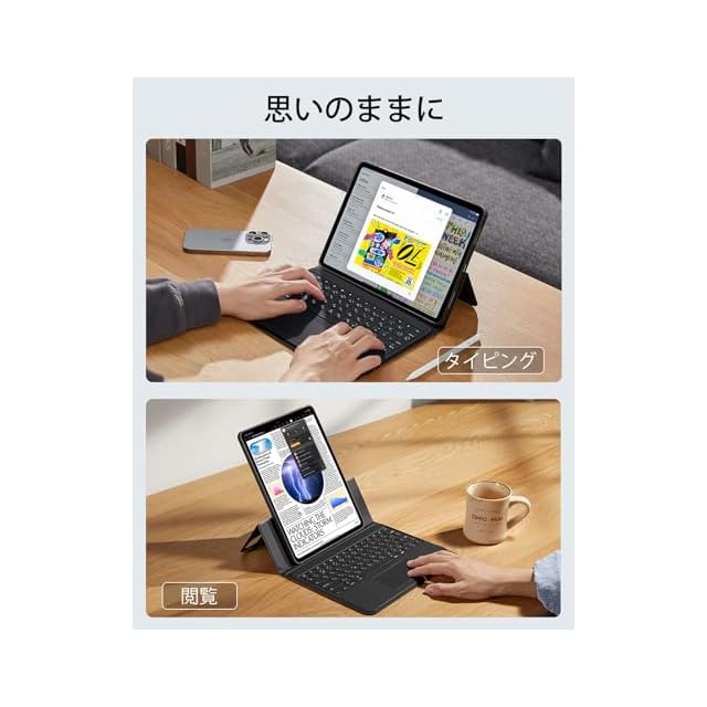 商品名:ESR Ascend iPad Pro 13インチ M4 2024 トラックパッド付きキーボードケース バックライトキー付きマグネット着脱式キーボード 角度調節可能縦置き/横置きスタンド ブラック