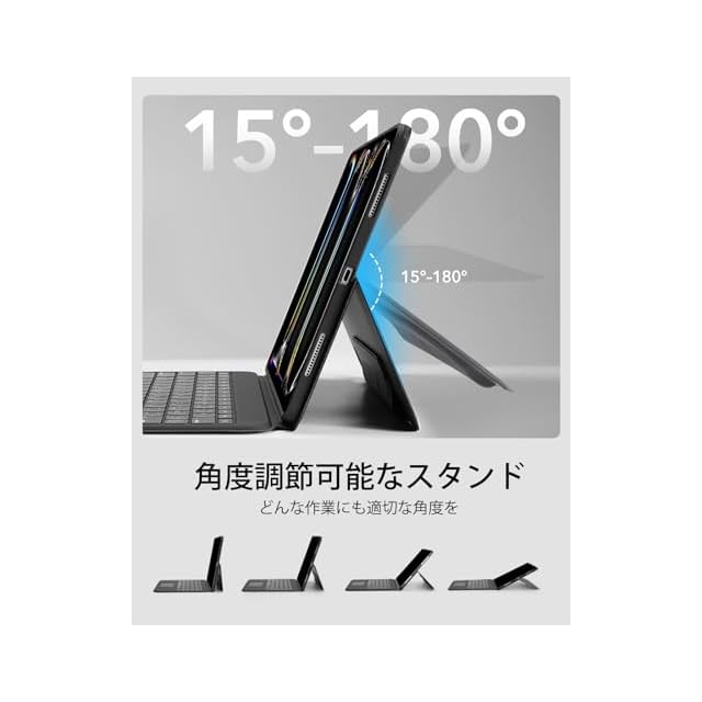 15°から180°まで自由に調整できるスタンドで、どんな作業にも最適な角度を見つけられます。