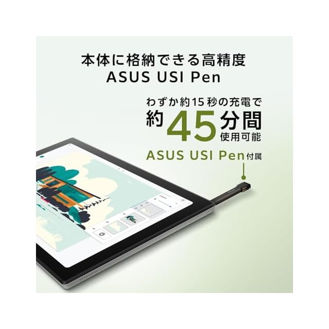 【通信】IEEE802.11a/b/g/n/ac/ax (Wi-Fi 6), Bluetooth 5.2【バッテリー】約12時間(本体+キーボード時:約12時間)【消費電力】最大約45W【主な付属品】ACアダプター, 製品マニュアル, 製品書, ASUS USI Pen (本体収納可能)、デタッチャブルキーボード、スタンドカバー