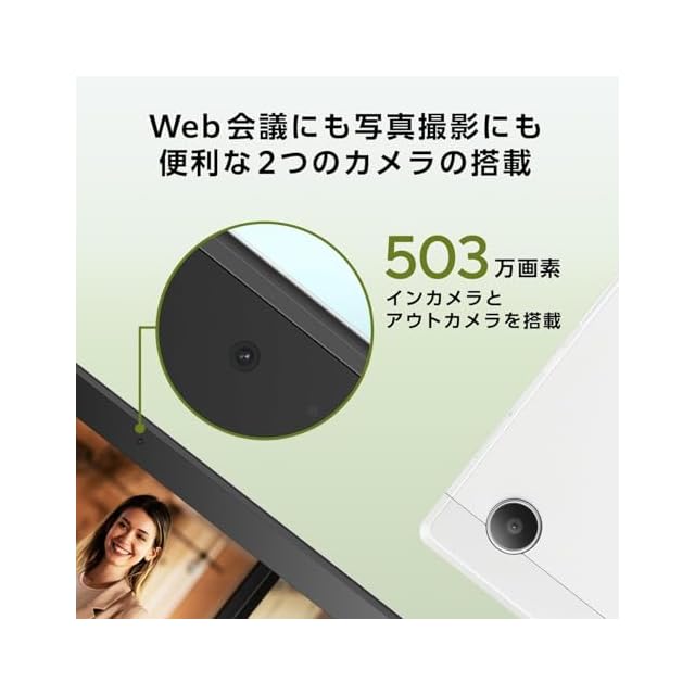 【CPU】MediaTek Kompanio 520 (8186)【メモリ】8GB【ストレージ】eMMC:128GB【ディスプレイ】10.5型ワイドTFTカラー液晶/グレア/1,920×1,200ドット (60Hz)【インカメラ】503万画素Webカメラ内蔵【アウトカメラ】503万画素Webカメラ内蔵 (オートフォーカス対応)