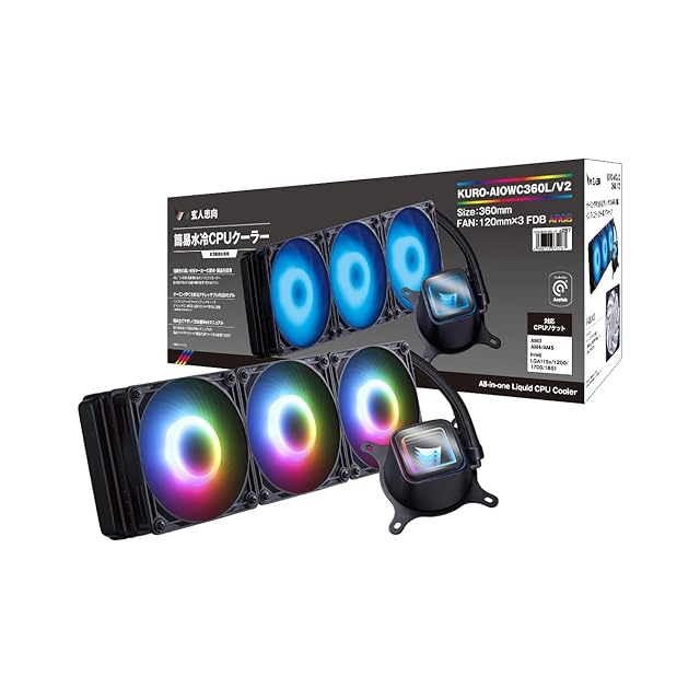 玄人志向 水冷 CPUクーラー LED モデル 360mm (120mm PWMファン×3) ASETEK 製ラジエーター搭載 KURO-AIOWC360L/V2 | TREND DESIGN 家電専門店