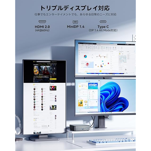 【マルチディスプレイ作業で効率2倍】独自のトリプルディスプレイ技術により3画面同時出力(HDMI+USB-C+DP)を実現。株式取引(複数チャート同時監視)/動画編集(タイムライン+プレビュー+素材ライブラリ)/プログラミング開発(コード+ドキュメント+デバッグ画面並列表示)など、マルチタスク作業に最適です。