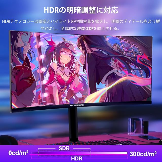 XUNDEFINED 34インチ湾曲ゲーミングモニター 180Hz/1ms/UWQHD 21:9 曲面 1500R ウルトラワイド モニター/4000:1コントラスト比/126% sRGB/HDR/Adaptive Sync/ブルーライト軽減/フリッカーフリー/高さ&傾斜調整/HDMI2.0×2/DP1.4×2/VESA対応 | TREND DESIGN 家電専門店