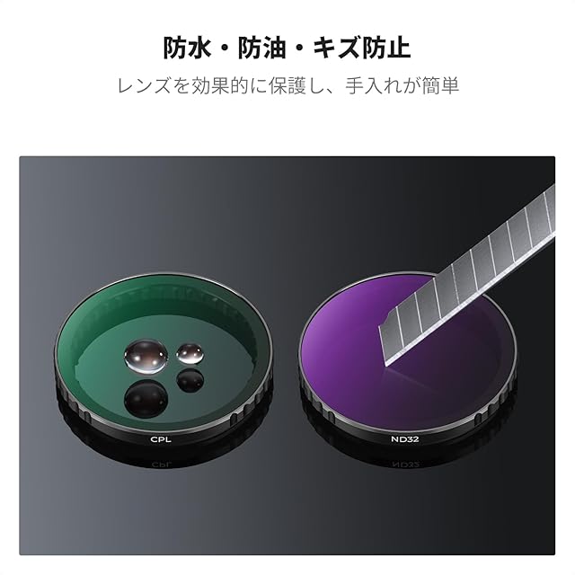 【減光効果&シャッタースピードの調整】NDフィルターセット(ND8/16/32/64/1000)を使えば、明るい環境でも適切な露出を得ることができます。また色のバランスを保ちながら光を減少させるため、全体的な色彩の質を向上させます。風景撮影、ポートレート、ビデオ撮影など、さまざまなシーンで使用でき、プロフェッショナルからアマチュアまで幅広いユーザーに支持されています。